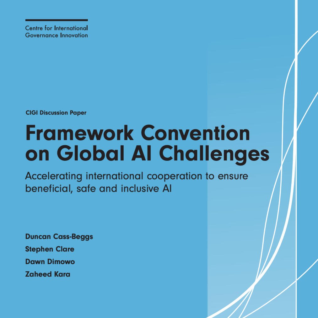 Duncan Cass-Beggs, Stephen Clare, Dawn Dimowo, Zaheed Kara (2024)This discussion paper explores three emerging global-scale challenges posed by advanced AI that could require international cooperation: realizing the global benefits of AI, mitigating the global risks and making legitimate choices about future implications of AI for humanity. The paper draws on existing research and policy efforts, as well as valuable discussions and feedback from many quarters, and proposes the development of an international Framework Convention on Global AI Challenges.
